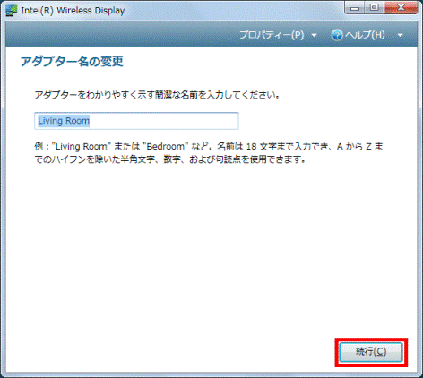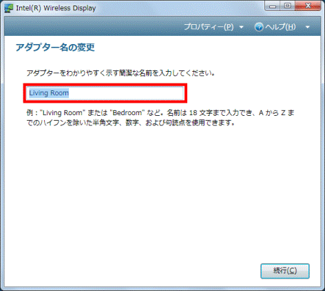 インテルWiDi のアダプター名を変更する場合は、入力欄に半角英数字でお好みのアダプター名を入力します。