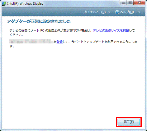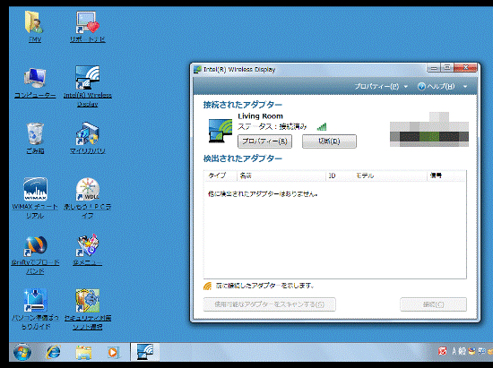 「検出されたアダプター」の項目に、お使いのインテルWiDi 受信アダプターが表示されたことを確認します。