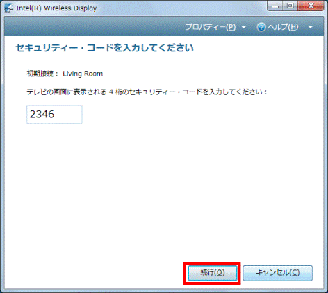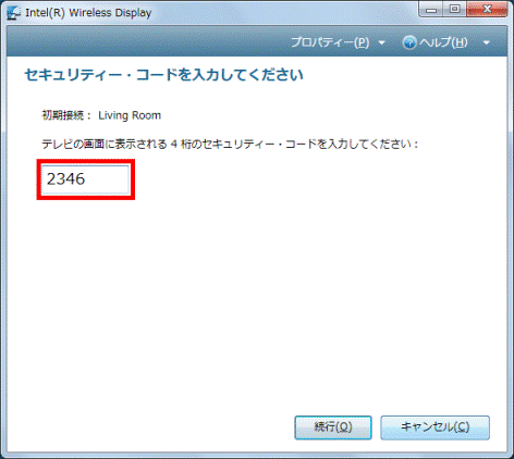 (セキュリティー・コードが「2346」の場合) - 表示されたセキュリティー・コードを、パソコン側に入力します。