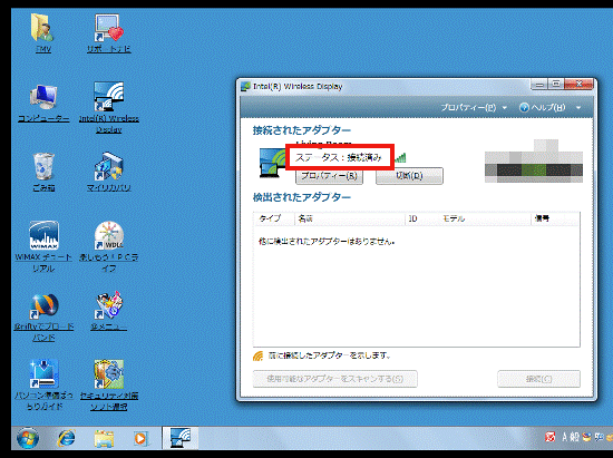 - 外部ディスプレイに「Intel(R) Wireless Display に接続しました。」(または「Intel(R) WiDi に接続しました。」)と表示されます。