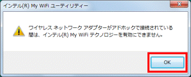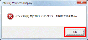 「OK」ボタンをクリックして閉じます。- 「インテル(R) My WiFiテクノロジーを開始できません。」