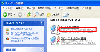 - 「ネットワークケーブルが接続されていません」と表示されている場合