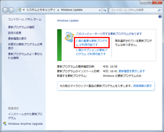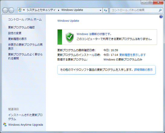 「Windowsは最新の状態です。」と表示された場合は、新しい重要な更新プログラムはありません。