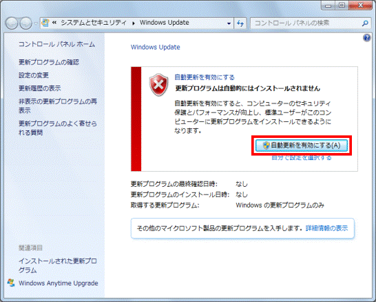 「自動更新を有効にする」と表示された場合は、次の手順で操作します。