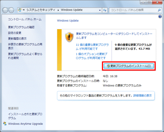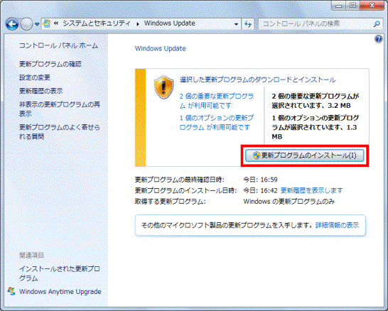 - 「更新プログラムのインストール」ボタンをクリックします。