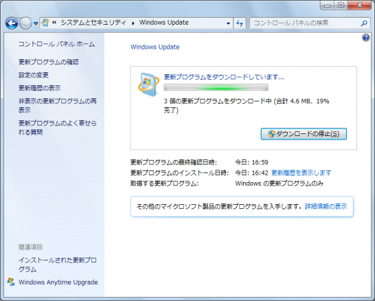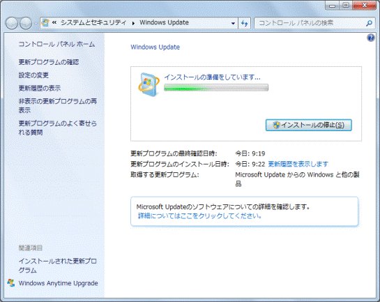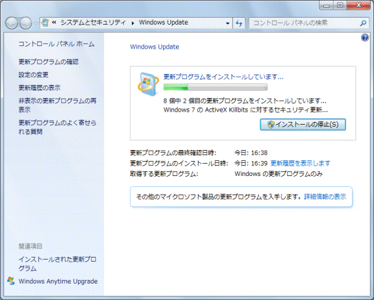 インターネットに接続した状態で実行してください。 - Windows Updateは、インストールするプログラムや環境によって、時間がかかる場合があります。