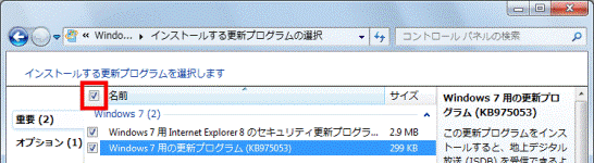 「名前」の左側のチェックボックスをクリックすると、すべての更新プログラムにチェックが付きます。