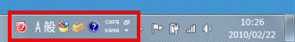 - タッチスクエアを搭載した機種をお使いで、言語バーをタスクバーに表示しようとしても、タッチスクエアに表示されてしまう場合は、次のQ&Aをご覧ください。