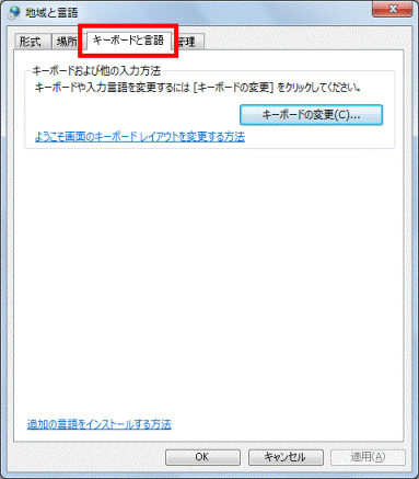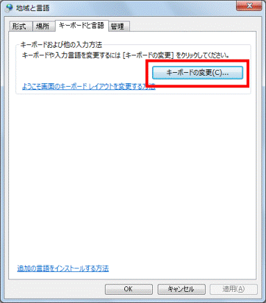 - 「キーボードまたは入力方法の変更」をクリックします。