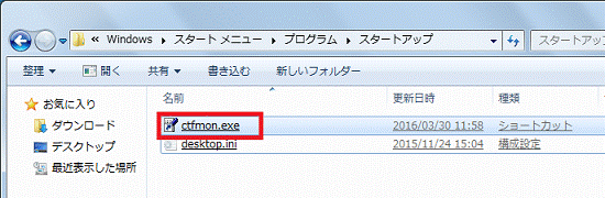 2番目の確認項目ctfmon(テキストサービス)をスタートアップに追加する