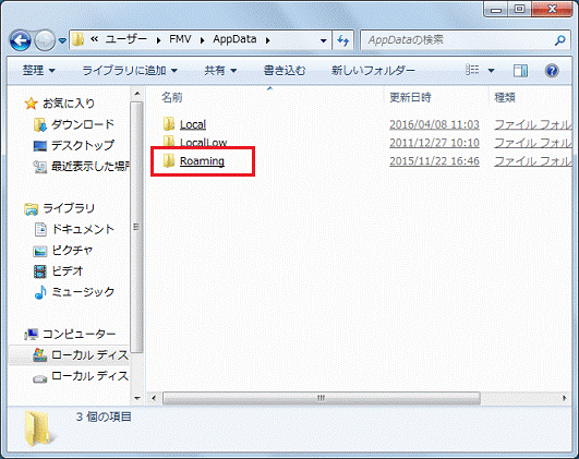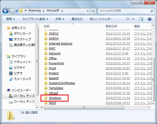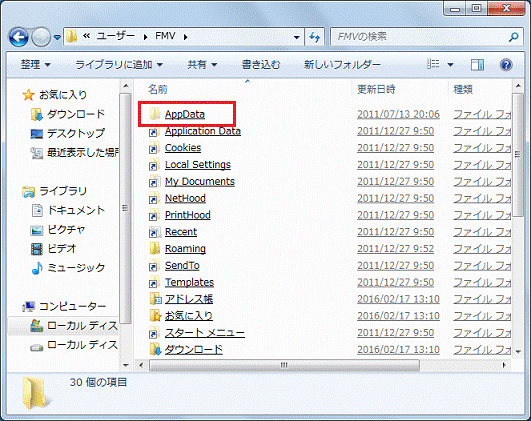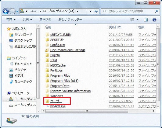 - お使いのユーザーアカウント名のフォルダーをクリックします。
