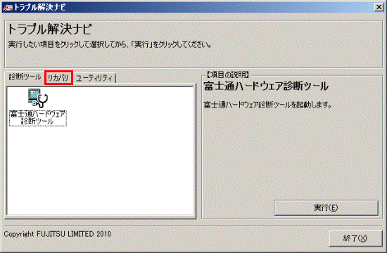 - Windows 7(64ビット)に切り替えた状態から、もう一度Windows 7(64ビット)にリカバリする場合は、本操作と同様の手順で実行できます。