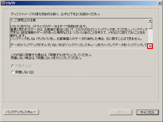 注意事項の内容をよく読み、同意する場合は、「▼」ボタンをクリックし、スクロールバーを一番下まで移動します。