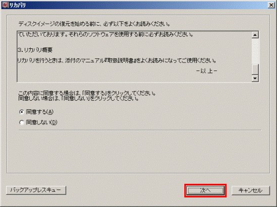 - 「ディスクイメージの復元を始める前に、必ず以下をよくお読みください。」と表示されます。