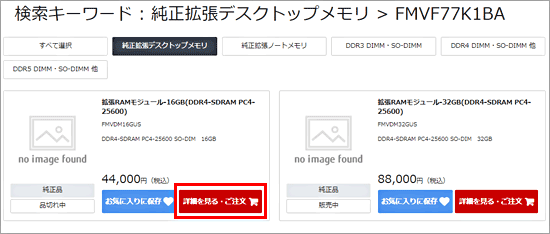 - メモリを購入する場合は、「詳細を見る・ご注文」ボタンをクリックし、表示される画面の案内にそって、購入手続きを行います。