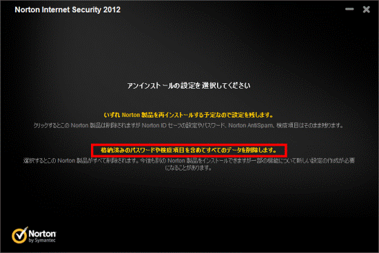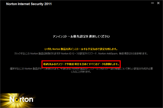 - Norton Internet Security 2011製品をアンインストールしますか?」と表示されます。