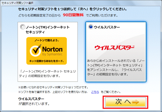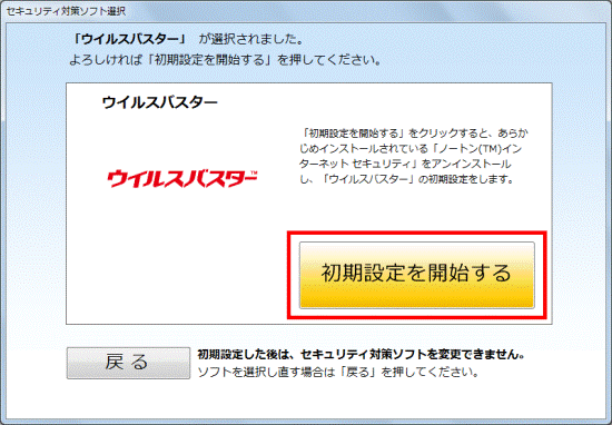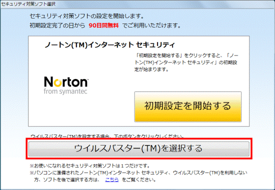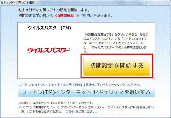 「ウイルスバスター(TM)を選択する」ボタンをクリックします。 - 「初期設定を開始する」ボタンをクリックします。