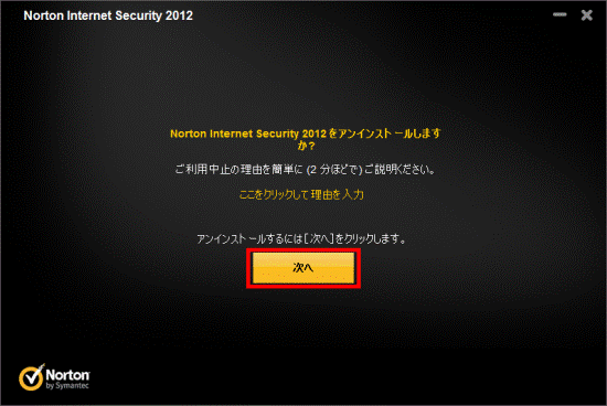 - 「Norton Internet Security 2012をアンインストールしますか?」と表示されます。