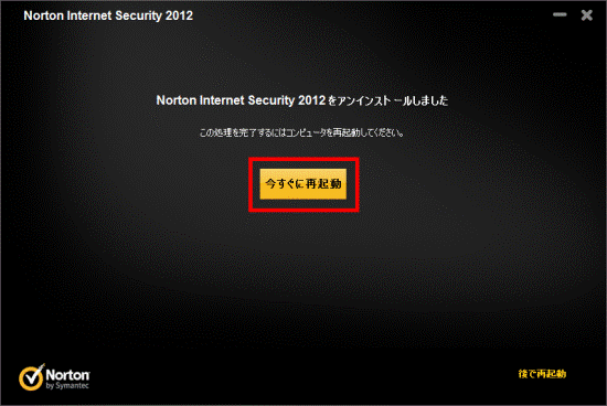 - 「Norton Internet Security 2012をアンインストールしました」と表示されます。