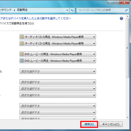 [Windows 7] 音楽CDと動画のDVDをセットしたときにだけ、自動再生する方法を教えてください。