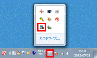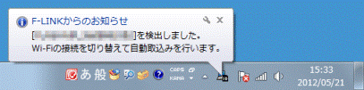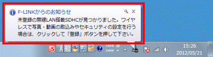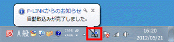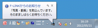 アドバイス「F-LINKからのお知らせ」と表示されない場合は、画面右下に表示されている、通知領域の「▲」ボタンをクリックし、「F-LINK(SD)」アイコンをクリックします。