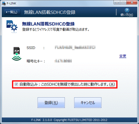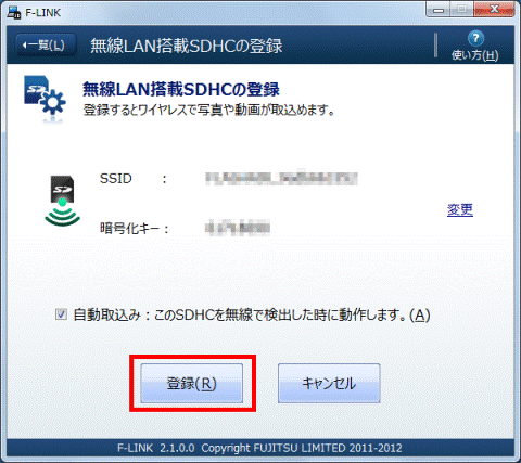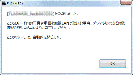 - 「無線LAN搭載SDHCの登録」と表示されます。