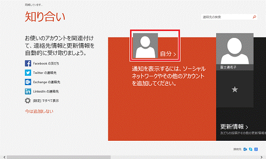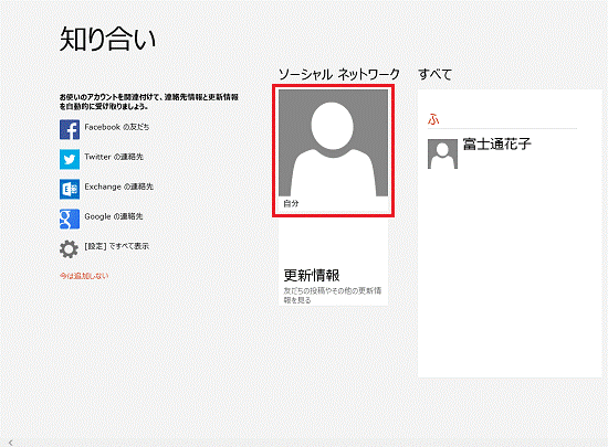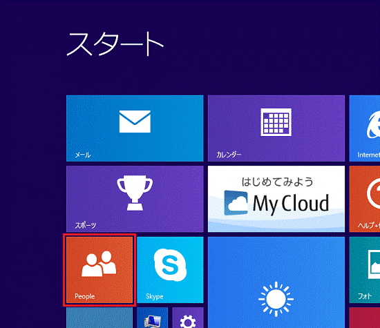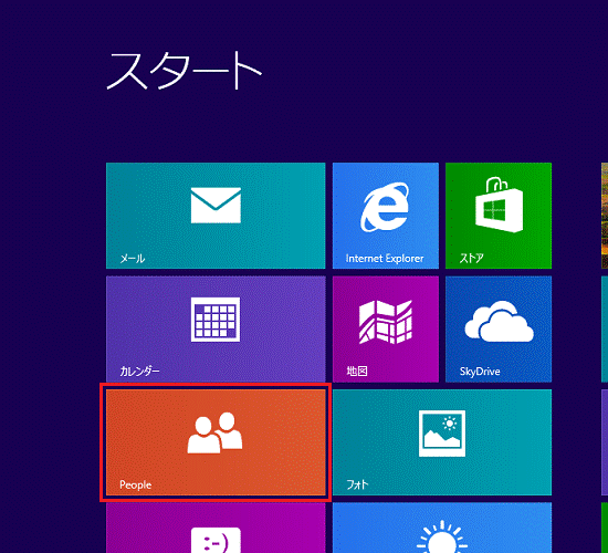 デスクトップの場合は、画面の右下にマウスポインターを移動し、チャームが表示されたら「スタート」をクリックしてから手順1.を操作します。 - People が起動し、「知り合い」が表示されます。