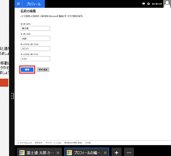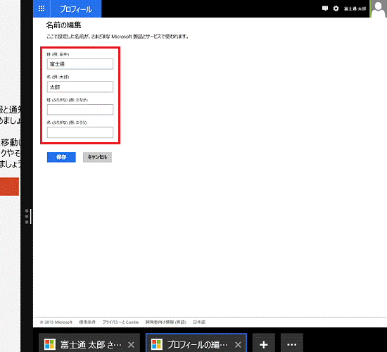 プロフィールで設定した名前は、さまざまなMicrosoft 社製品とサービスで使用されます。