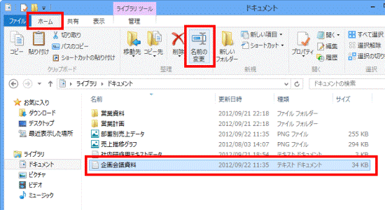 [Windows 8.1/8] ファイルやフォルダーの名前を変更する方法を教えてください。