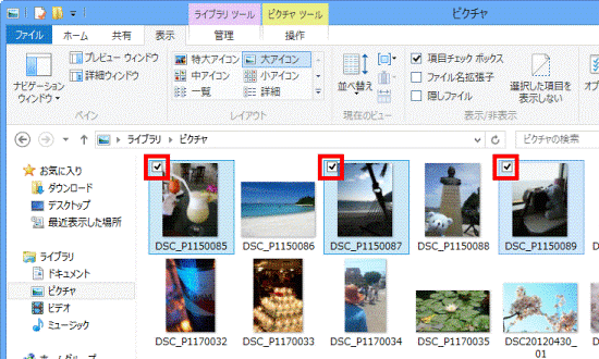 [Windows 8.1/8] 選択しているファイルやフォルダーを確認する方法を教えてください。