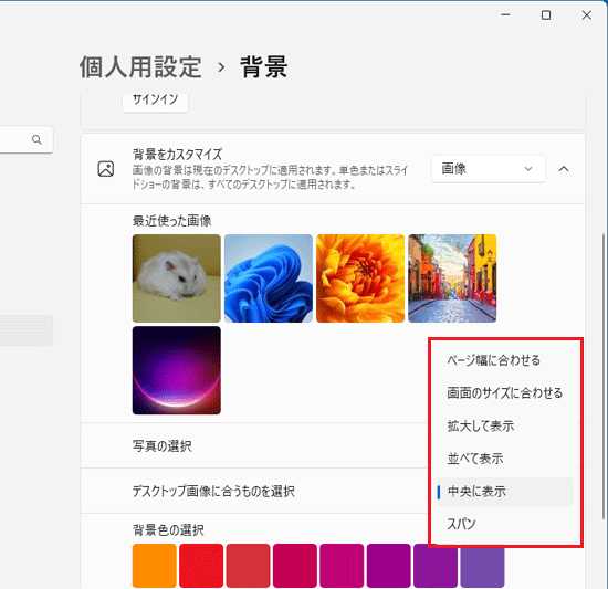 お好みの調整方法をクリックし、背景の表示方法を変更します。