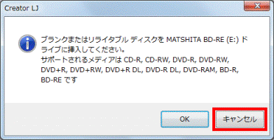 ディスクを取り出し、「キャンセル」ボタンをクリックします。