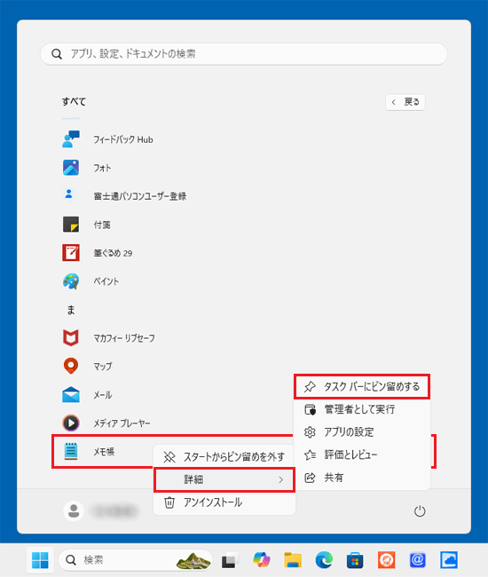 [Windows 11] よく使うアプリをタスクバーにピン留めする方法を教えてください。