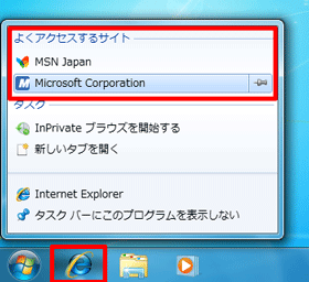 Windows 7の初期設定では、タスクバーにInternet Explorerのアイコンが表示されています。