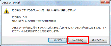 - 「元の場所のすべてのファイルを、新しい場所に移動しますか?」と表示されます。
