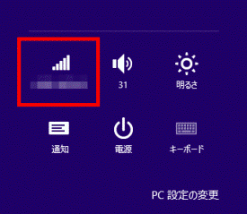 - 「ワイヤレス」アイコン(電波の強度を示すアイコン)をクリックします。