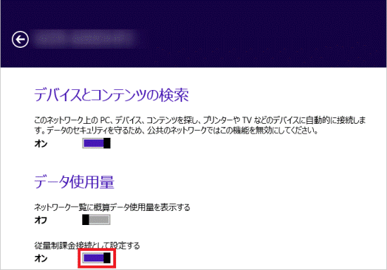 - 既に「オン」になっている場合は、従量制課金接続として設定されています。