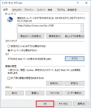 - 「インターネットのプロパティ」の「OK」ボタンをクリックします。