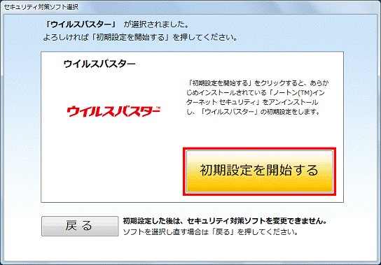 「「ウイルスバスター」が選択されました。」と表示されます。
