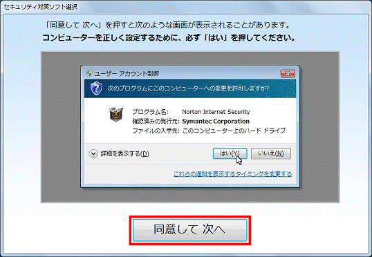 「コンピューターを正しく設定するために、必ず「はい」を押してください。」と表示された場合