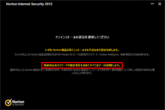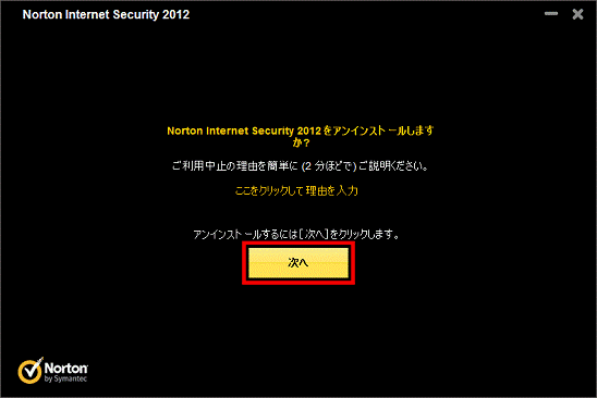 「Norton Internet Security 2012をアンインストールしますか?」と表示されます。