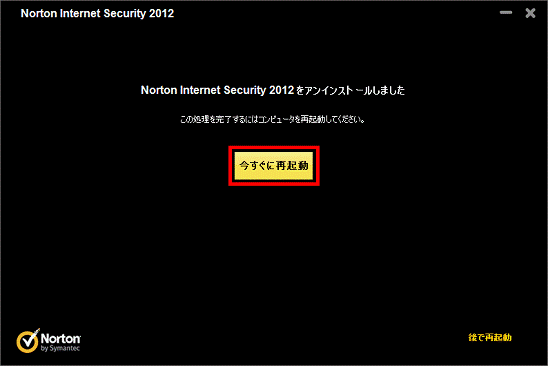 「Norton Internet Security 2012をアンインストールしました」と表示されます。