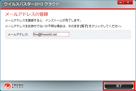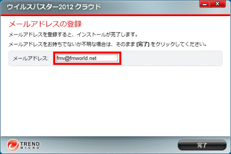 ウイルスバスターのセキュリティ対策を有効にするには、メールアドレスの登録が必要です。