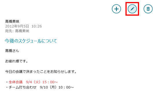 - 「編集」をクリックまたはタップすると、メールを編集できます。