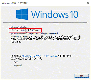 「バージョン 10.0 (ビルド 10240)」と表示されます。