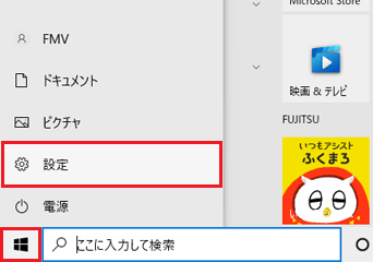 1. 「スタート」ボタン→「設定」(歯車のマーク)の順にクリックします。