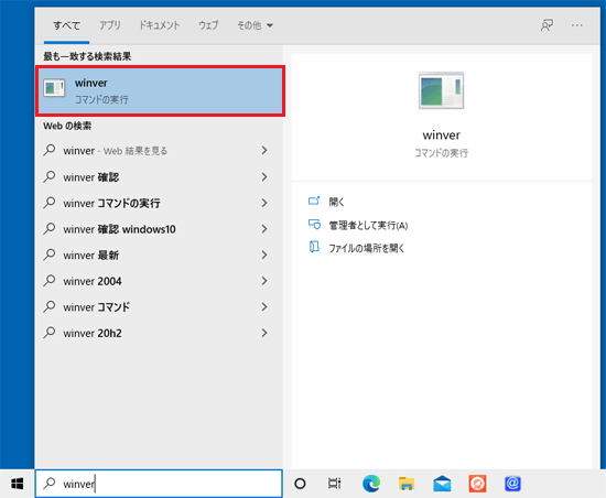 2. 「最も一致する検索結果」に表示される「winver」をクリックします。