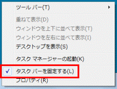 「タスクバーを固定する」にチェックを付けると、誤操作によるタスクバーの位置の変更や、サイズの変更を防げます。