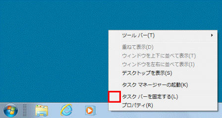 - もう一度タスクバーの何もない部分を右クリックし、表示されるメニューから「タスクバーを固定する」をクリックします。