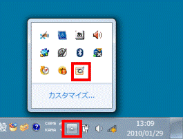 - Windows 7で通知領域にアイコンが表示されていないときは、「△」ボタンをタップ(クリック)すれば、表示される場合があります。